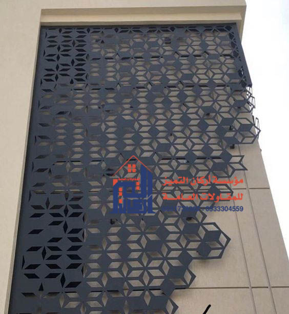 - هل تحجب الرؤية كلياً؟ لا تحجب الرؤية كلياً. يتم اختيار نمط القص وكثافة الفراغات لتوفير نسبة حجب (تظليل) معينة، وعادة ما تكون نسبة التظليل بين 50% إلى 80% حسب طلب العميل، مع السماح بالتهوية والضوء الخافت.