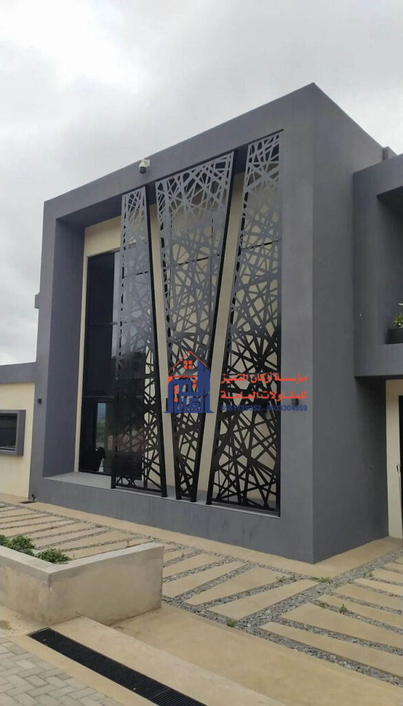 - أبواب الكراجات والبوابات الرئيسية: يمكن استخدام تصميم قص الليزر لدمج الجمالية مع الأمان. تصميم البوابة يكون جزءاً من تصميم الواجهة العامة.