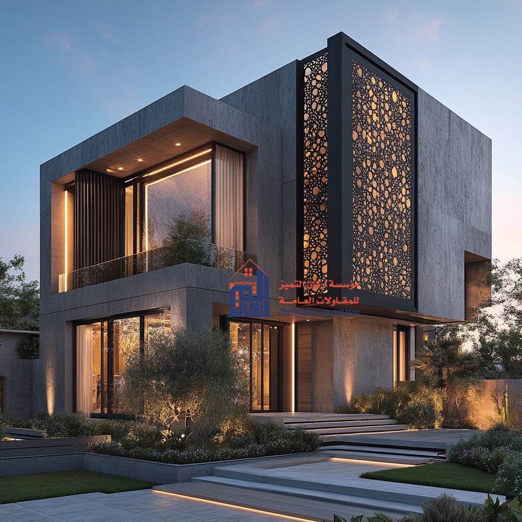 - ما هو أفضل لون لهذه الواجهات؟ الألوان الأكثر شيوعاً هي الألوان الداكنة مثل الأسود، الرمادي الداكن، أو البني المائل للأسود. هذه الألوان تزيد من التباين وتجعل النمط المفرغ يظهر بوضوح أكبر خاصة تحت الإضاءة.